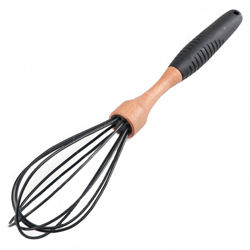 Доставка Венчик ручной силиконовый с деревянной ручкой чёрный 28 см из магазина в вашем городе: