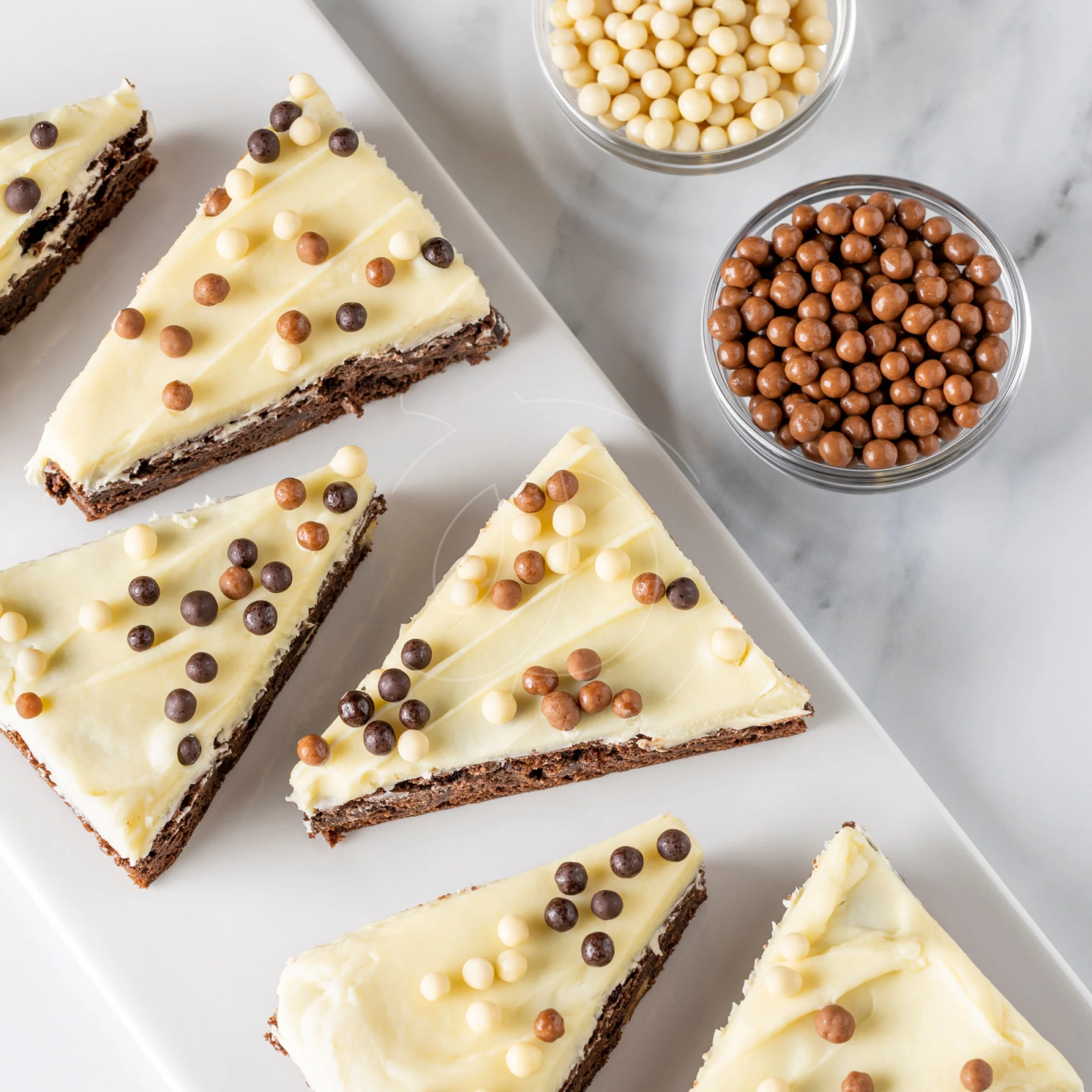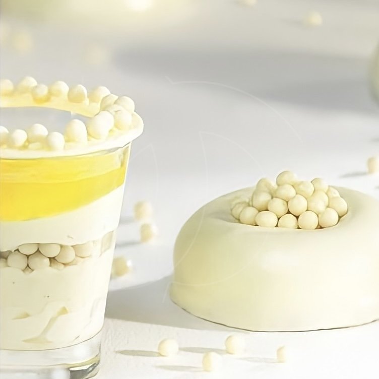 Добавьте к вашим десертам хрустящие шарики Crispearls, покрытые белым шоколадом Бельгийского производства.