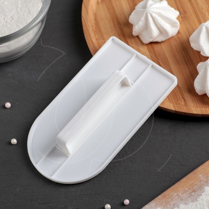 Утюжок или скребок для мастики создан для эффективного выравнивания жидкого теста или крема.