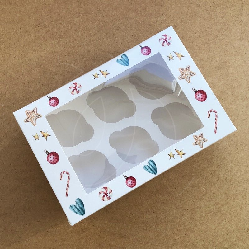 Доставка Коробка на 6 капкейков с окном "С Рождеством!" 25х17х10 см из магазина в вашем городе: