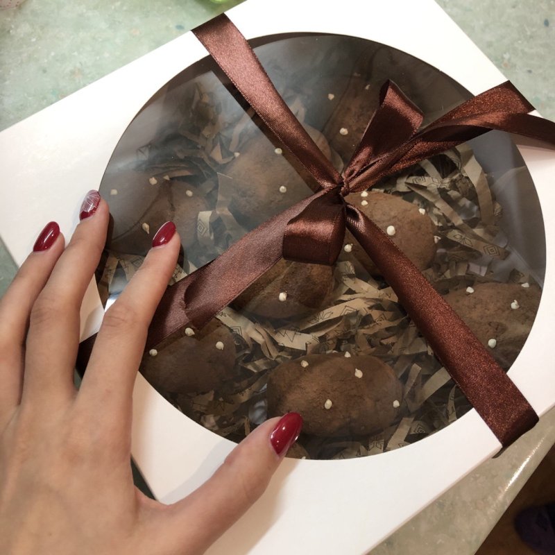 Коробка подойдет для капкейков, маффинов, пирожных или другого десерта.