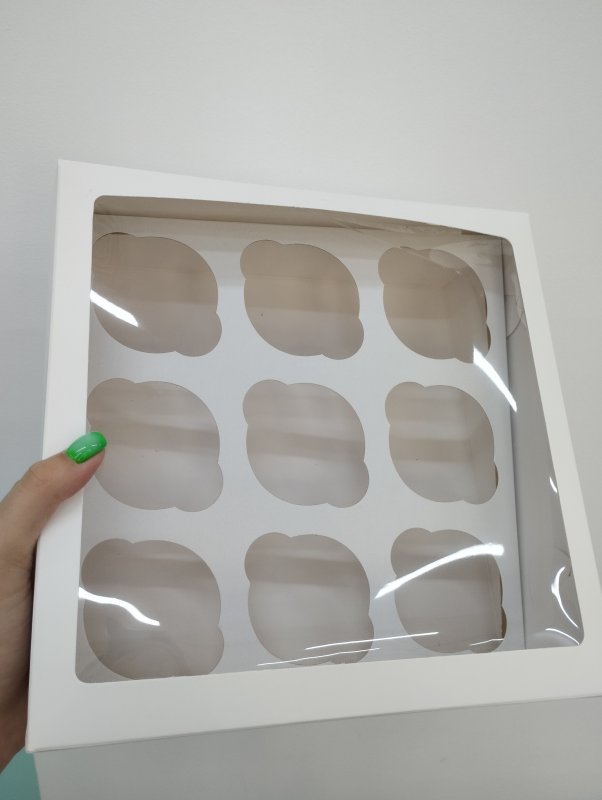 Доставка Коробка на 9 капкейков с окном белая 25х25х10 см из магазина в вашем городе: