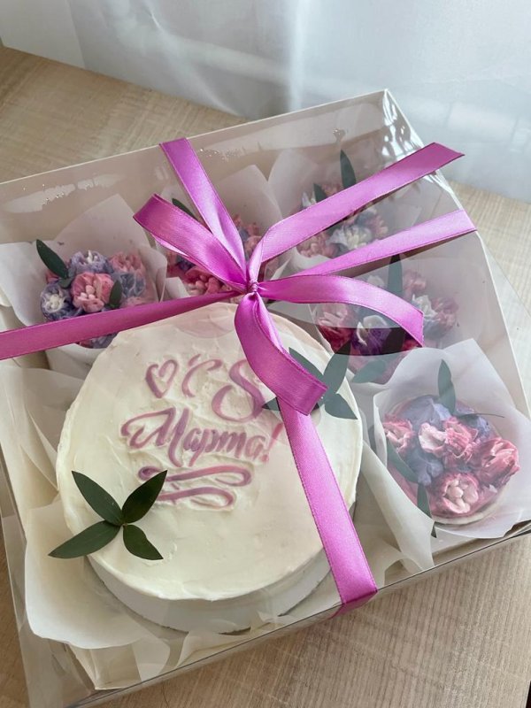 Коробка подойдет для капкейков, маффинов, пирожных или другого десерта.