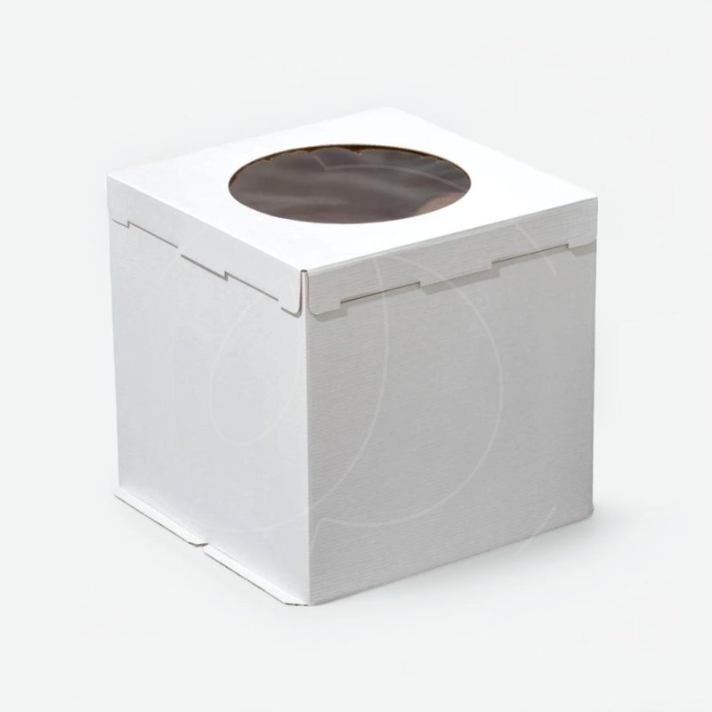 Доставка Коробка для торта с круглым окном белая 26х26х30 см из магазина в вашем городе: