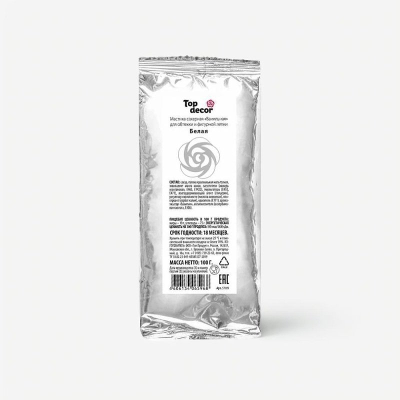 Доставка Мастика кондитерская ванильная Top Decor "Белая" 100 г из магазина в вашем городе:
