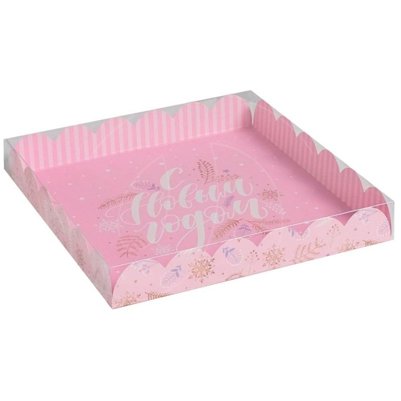 Доставка Коробка для печенья/конфет с прозрачной крышкой "С Новым Годом" розовая 21х21х3 см из магазина в вашем городе: