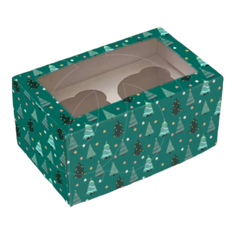 Доставка Коробка на 2 капкейка с окном "Ёлочки зелёные" 10х16х8 см из магазина в вашем городе: