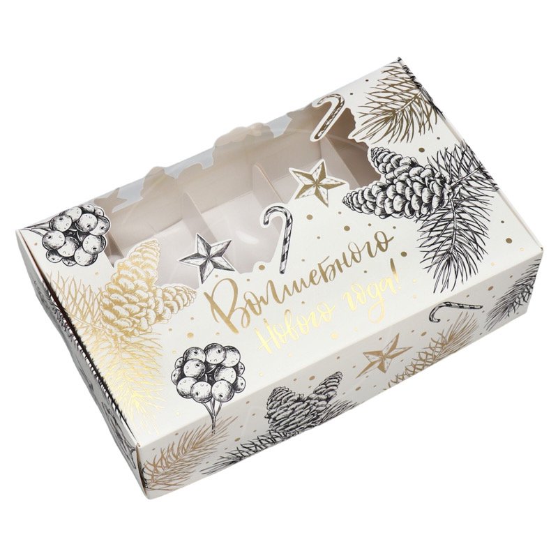 Доставка Коробка на 5 эклеров "Волшебный Новый Год" 25,2х15х7 см из магазина в вашем городе: