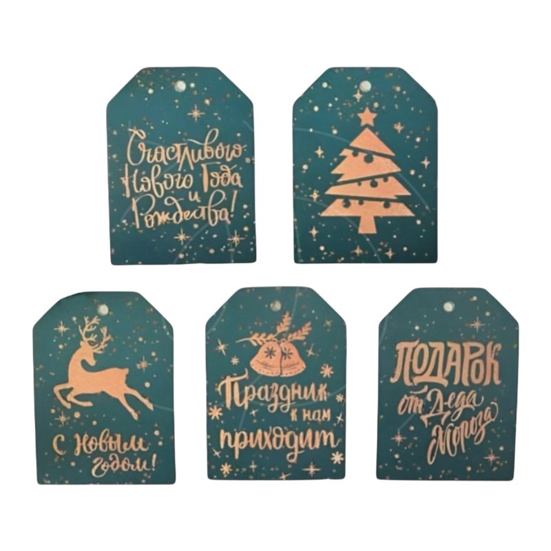 Набор декоративных бирок "Новый Год" Бирюзовый 5 шт