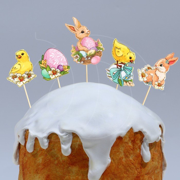 Доставка Набор топперов декоративных бумажных "Пасха" 5 шт из магазина в вашем городе: