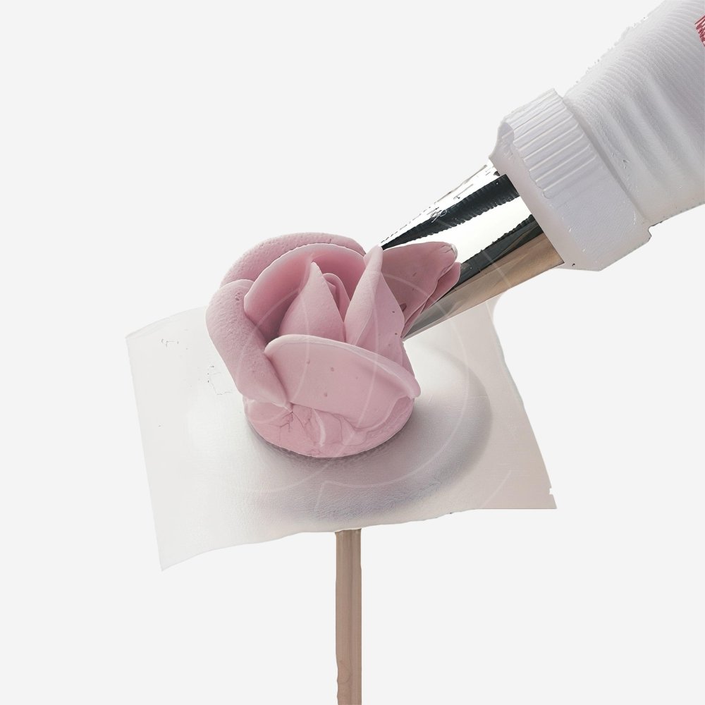 - в это время выдавливайте крем небольшими порциями на шляпку гвоздя, формируя лепестки;