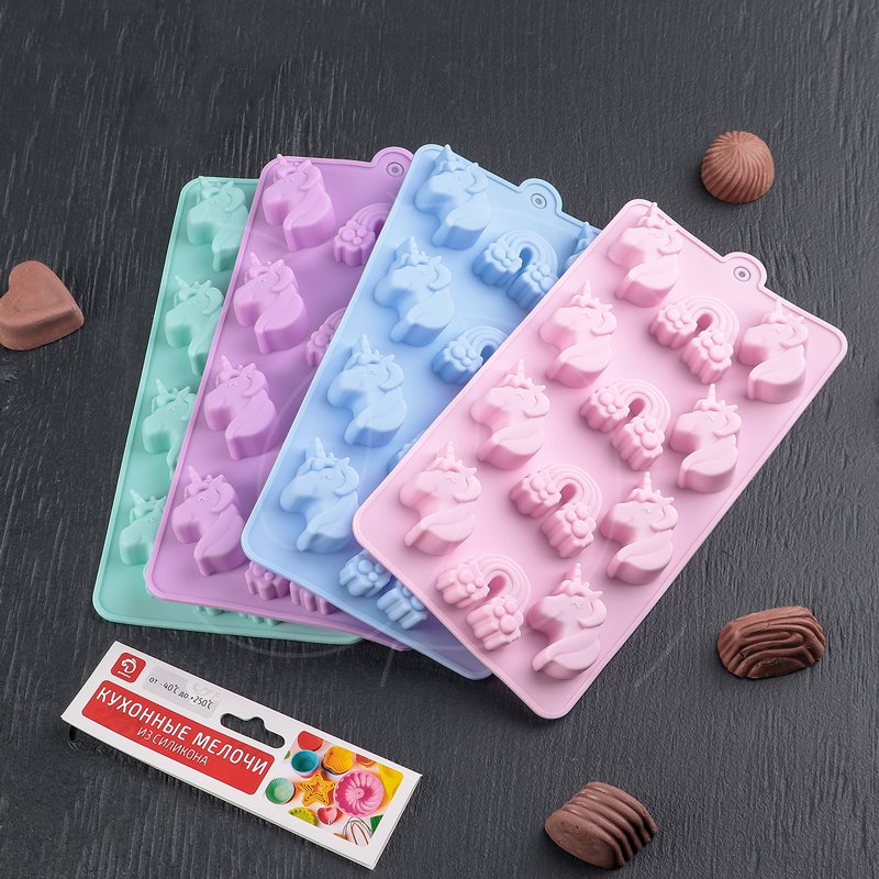 Доставка Форма силиконовая для шоколада "Единороги и радуга" 12 шт из магазина в вашем городе: