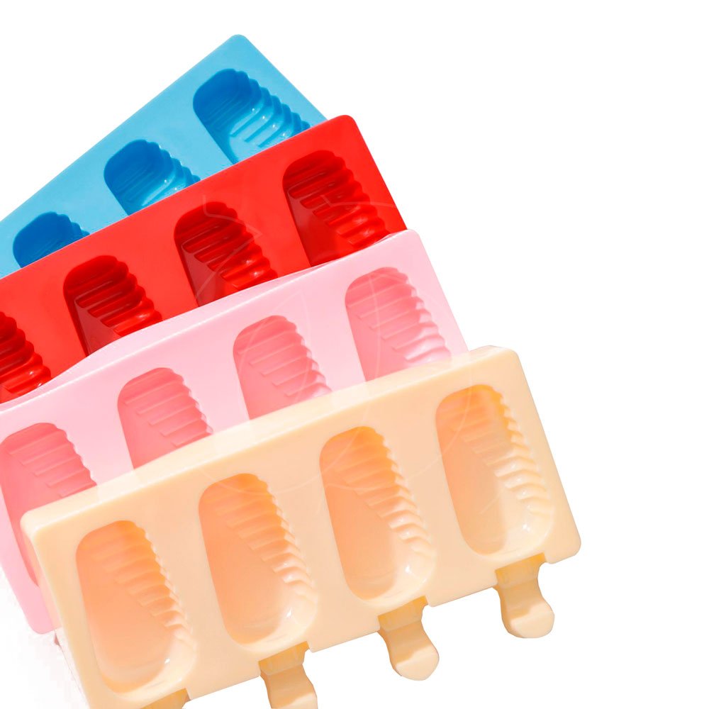 На одной форме 4 ячейки. Каждая оснащена углублениями для палочек эскимо.
