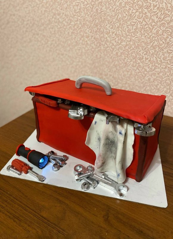 Форма отличная по качеству, силикон плотный. Инструменты реально похожи на настоящие после покраски серебряным блеском. Особенно гайки и винтики реалистичные. Когда презентовала торт, у меня несколько раз уточнили точно ли инструменты шоколадные, а не настоящие