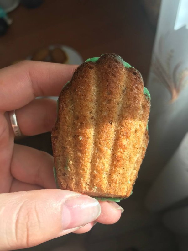Я думала, что мадленки - это такие печеньки из маминой юности)) А потом увидела в каталоге фото с шоколадным покрытием и влюбилась, тут же заказала форму, шоколад и красители. Форма не очень глубокая, в рецептах советуют заполнить 2/3 формы, но я заполняла ячейку полностью и у меня мадленки получились аккуратно дутыми. Думаю, если положить меньше теста, то они будут просто плоскими. Рисунок красивый, удлиненная ракушечка. Смазывала форму топленым маслом (так было указанно в рецепте) У меня на одну ячейку уходила чайная ложка теста с очень уверенной горкой. Красила красителями mixie.