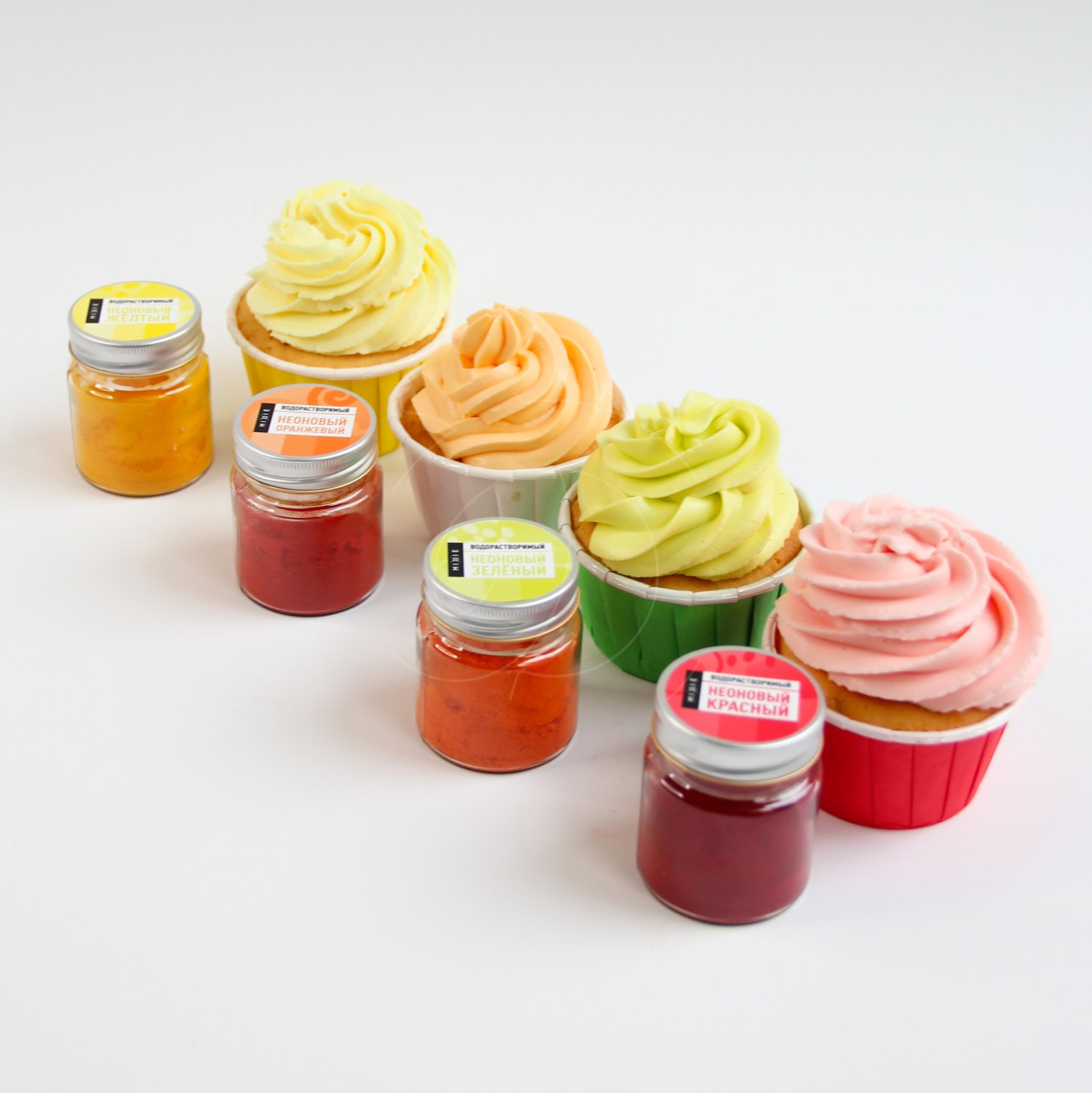 Насыщенный высокопигментированный краситель отлично подходит для жидких и густых масс - крем, тесто, сливки, карамель и бисквиты, безе, мороженое, мастика, марципан.