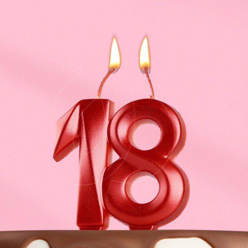 Доставка Свеча декоративная Цифра "18" Красный металлик 8 см из магазина в вашем городе: