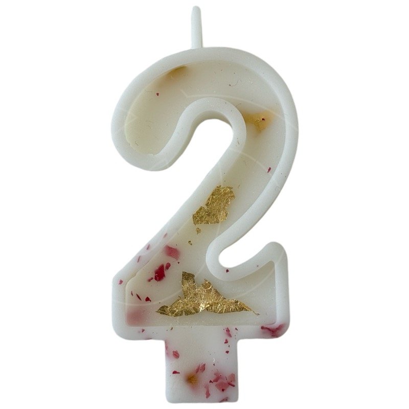 Доставка Свеча декоративная Цифра "2" Белая с розой и поталью из магазина в вашем городе: