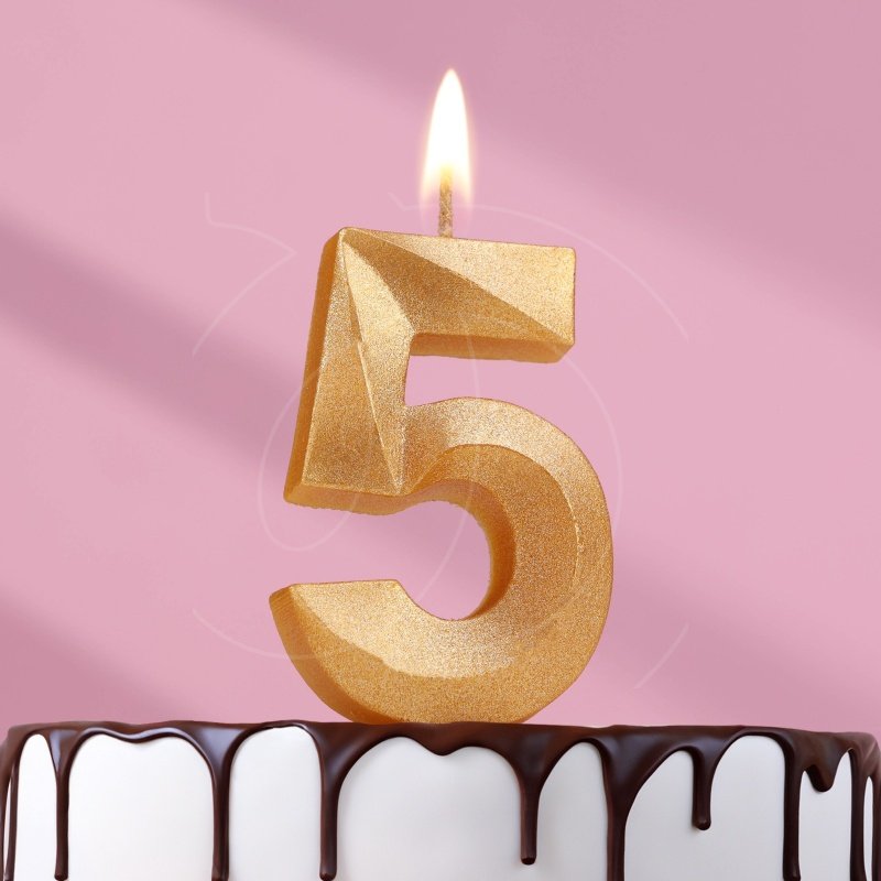 Доставка Свеча декоративная Цифра "5" Грань Золото из магазина в вашем городе:
