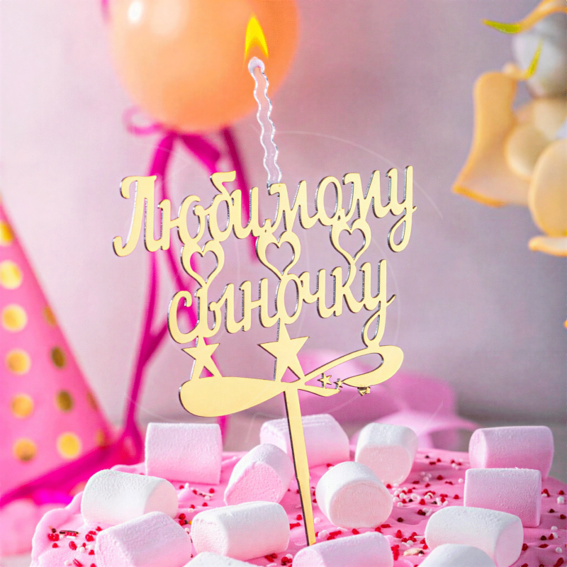 Доставка Свеча-топпер декоративная акриловая "Любимому сыночку" Золото из магазина в вашем городе: