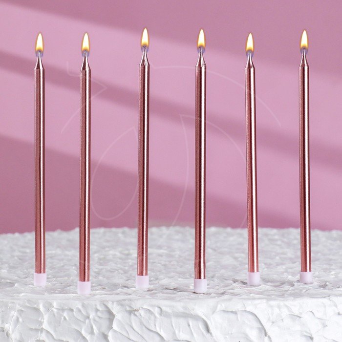 Доставка Свечи декоративные Розовый металлик 13 см 6 шт из магазина в вашем городе: