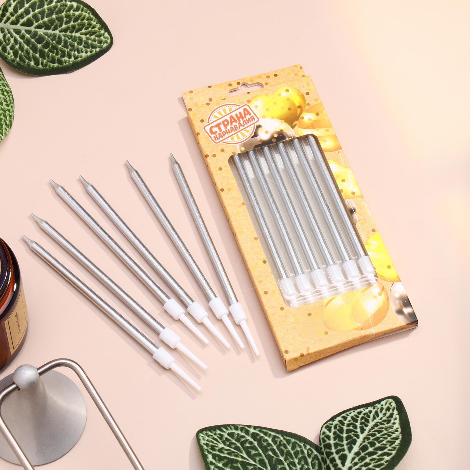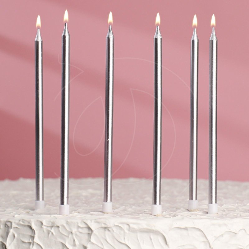 Доставка Свечи декоративные Серебристые гладкие 13 см 6 шт из магазина в вашем городе:
