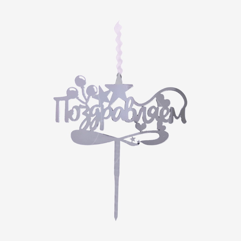Доставка Свеча-топпер декоративная акриловая "Поздравляем" Серебро из магазина в вашем городе: