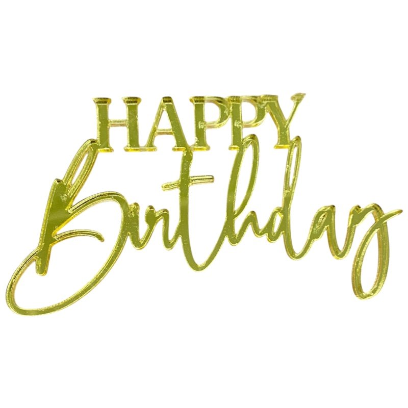Доставка Топпер декоративный акриловый "Happy birthday" Золото 9х5 см из магазина в вашем городе: