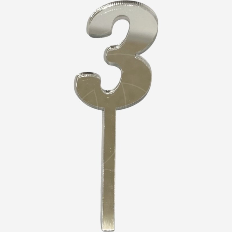 Доставка Топпер декоративный акриловый "Цифра 3" Серебро 9,5х3 см из магазина в вашем городе: