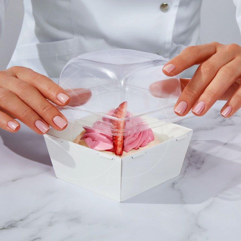 Поместите десерт в упаковку и закройте крышку.