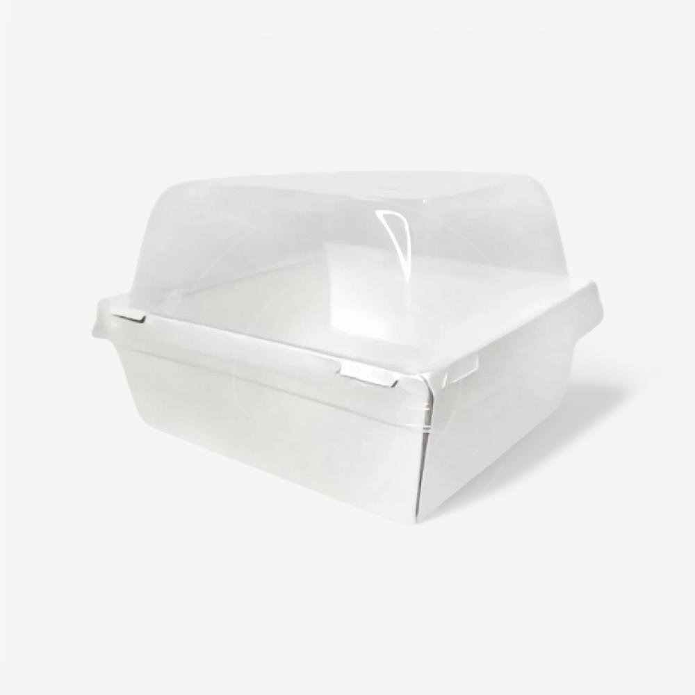 Упаковка выполнена из пищевого картона с жёсткими двойными бортами, дном и пластиковой крышкой.