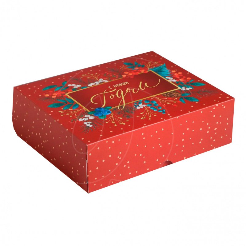 Доставка Коробка для сладостей "С Новым Годом. Веточки" красная из магазина в вашем городе: