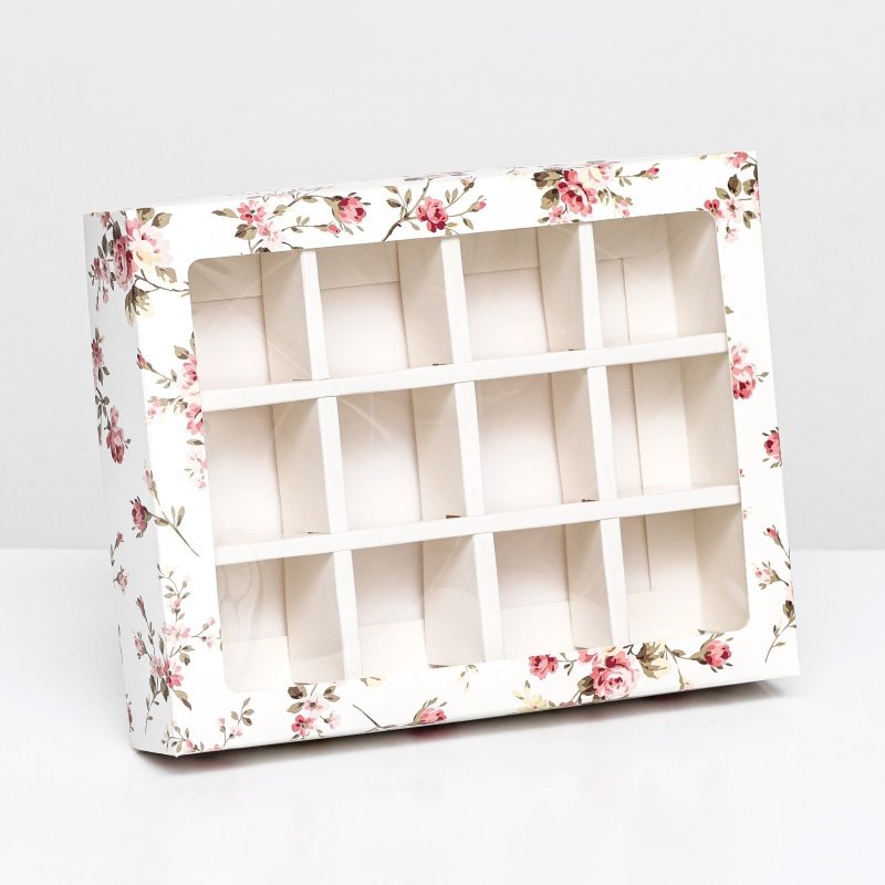 Доставка Коробка на 12 конфет с окном "Цветочное дерево" 19х15х3,6 см из магазина в вашем городе: