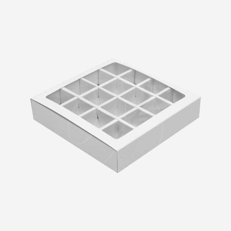Доставка Коробка на 16 конфет с окном белая 17,7х17,7х3,7 см из магазина в вашем городе: