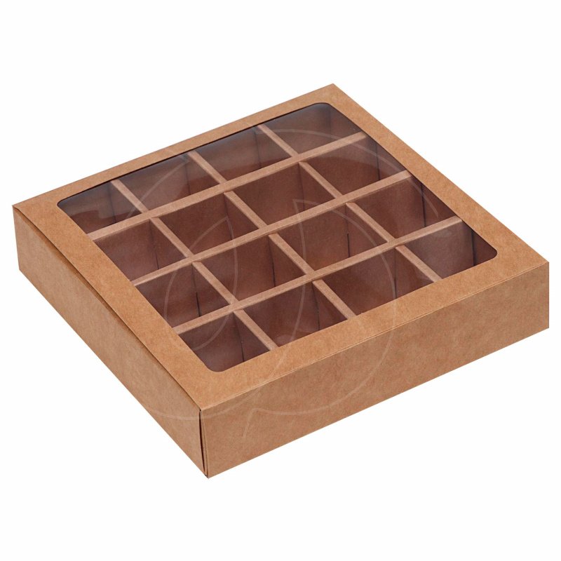 Доставка Коробка на 16 конфет с окном крафт 17,7х17,7х3,7 см из магазина в вашем городе: