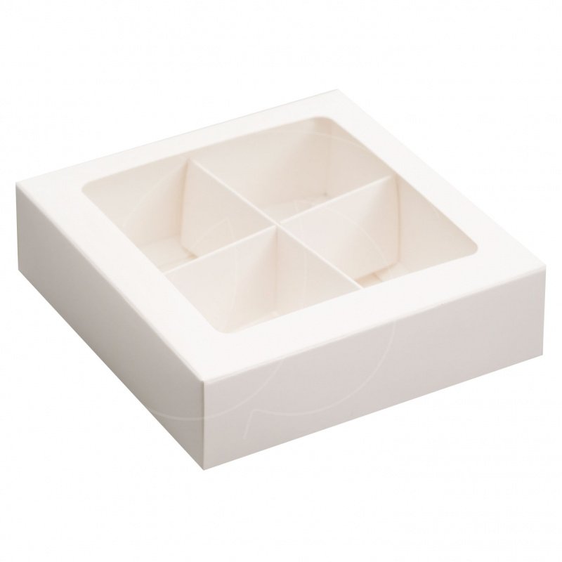 Доставка Коробка на 4 конфеты с окном белая 12,6х12,6х3,5 см из магазина в вашем городе: