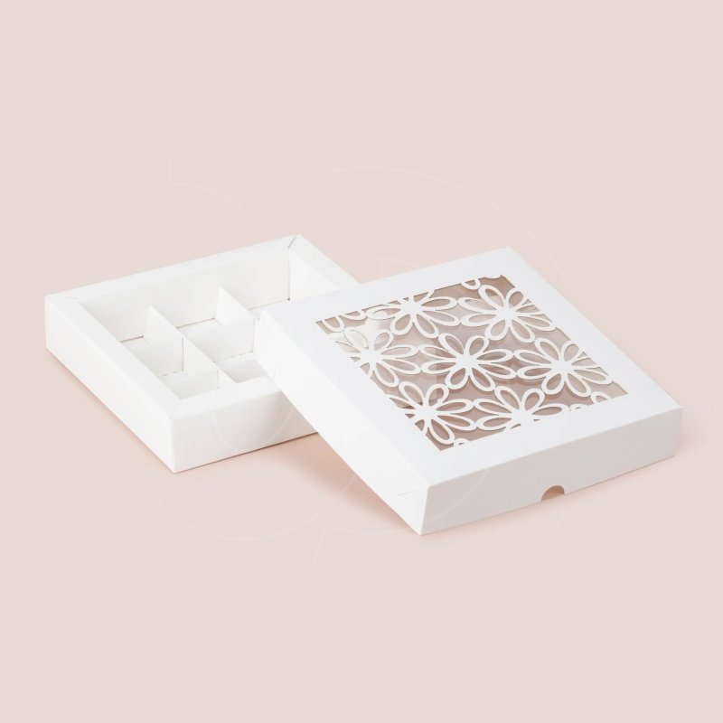 Доставка Коробка на 9 конфет с окном "Ромашка" белая из магазина в вашем городе: