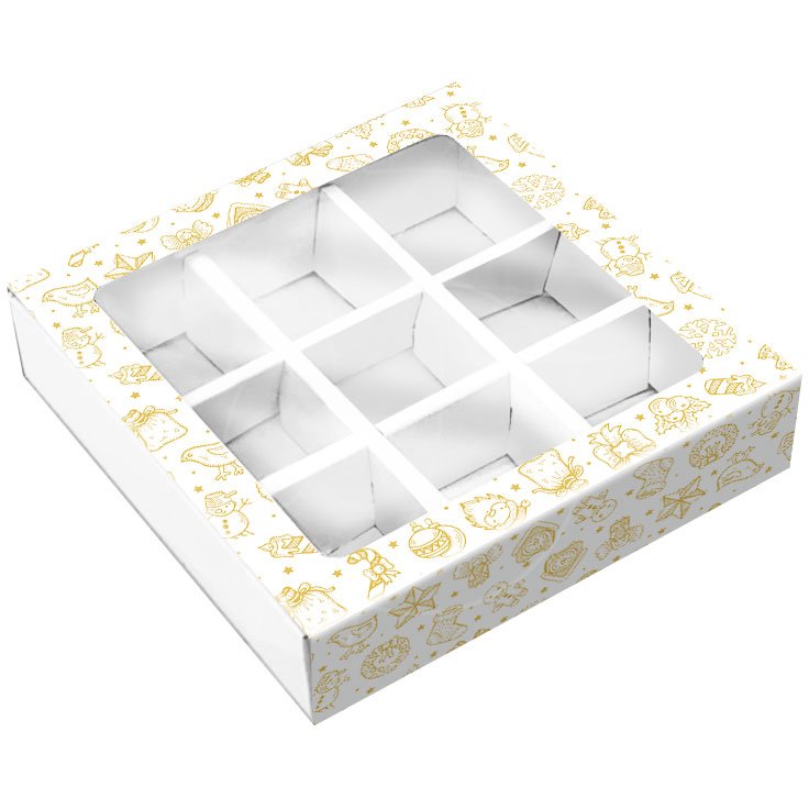 Доставка Коробка на 9 конфет с окном "Новый Год!" 13,8х13,8х3,8 см из магазина в вашем городе: